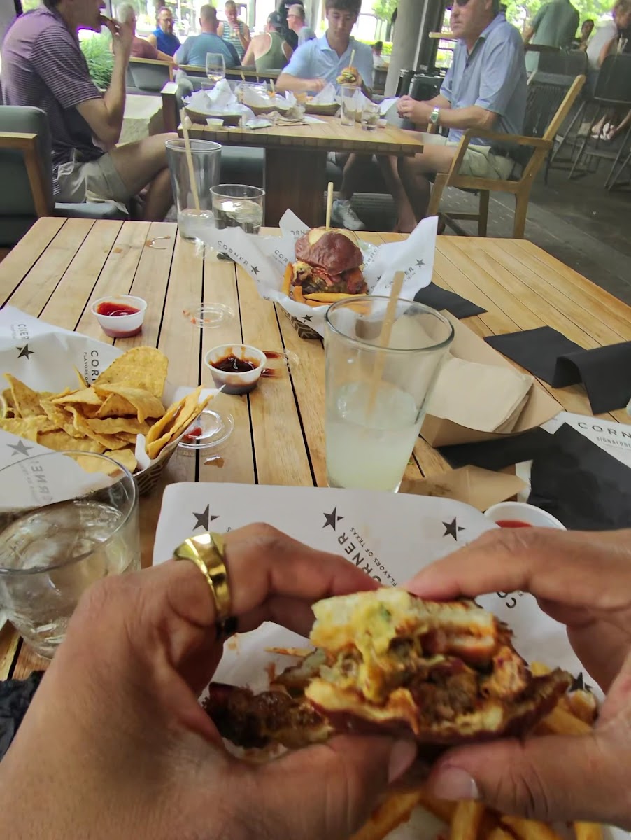 Corner Restaurant shines particularly during brunch, where standout dishes such as the Short Rib Taquitos—delicately filled with oaxaca cheese, hatch chile, and finished with fresh pico de gallo and salsa verde—are sure to impress. The Spicy Guacamole, with its creamy texture enhanced by charred serrano chilies and tangy lime, pairs perfectly with crispy tortilla chips, making it a must-try for any avocado lover. For a hearty option, the Brunch Burger is a crowd favorite, embodying all the satisfaction of a perfectly cooked burger topped with your choice of fresh fixings.